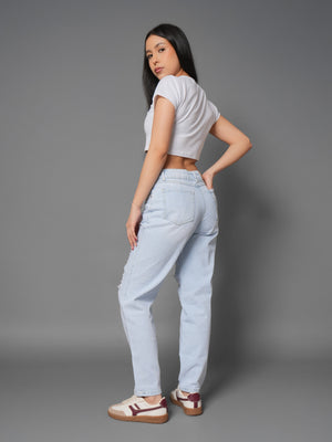 Pantalón en denim semilicrado, elaborado con una composición de 99% algodón y 1% poliéster, que brinda una sensación de comodidad sin perder la estructura del jean. Su bota recta estiliza la figura y permite una caída natural que se adapta al movimiento del cuerpo.