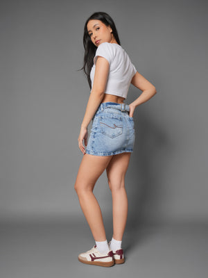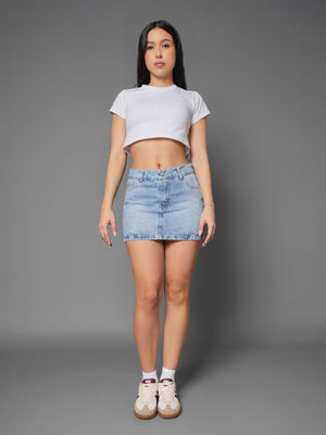 Falda clásica elaborada en denim rígido, diseñada para ofrecer estructura, durabilidad y un ajuste firme que realza la silueta. Su corte atemporal y tiro favorecedor la convierten en una prenda versátil, ideal para crear looks casuales o más urbanos según cómo la combines.